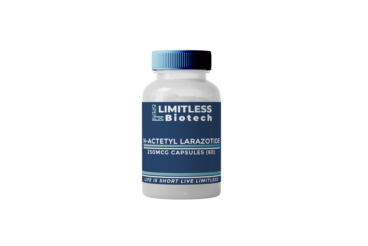N-Acetyl Larazotide (250mcg, 60 Capsules) provides a laboratory-grade peptide designed for research into intestinal barrier regulation, tight junction modulation, and cellular permeability. Researchers study this compound to investigate gastrointestinal health, epithelial integrity, and molecular signaling pathways related to gut barrier function. The 60-capsule format allows precise dosing and repeatable experimental protocols for advanced laboratory studies.
